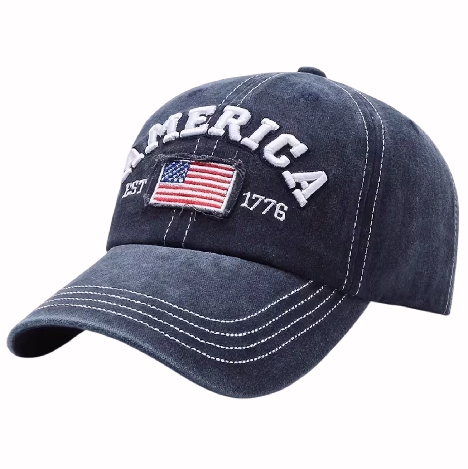Show your true love for our country with this America Flag Established 1776 Embroidered Brushed Blue Patriotic Cap Hat.