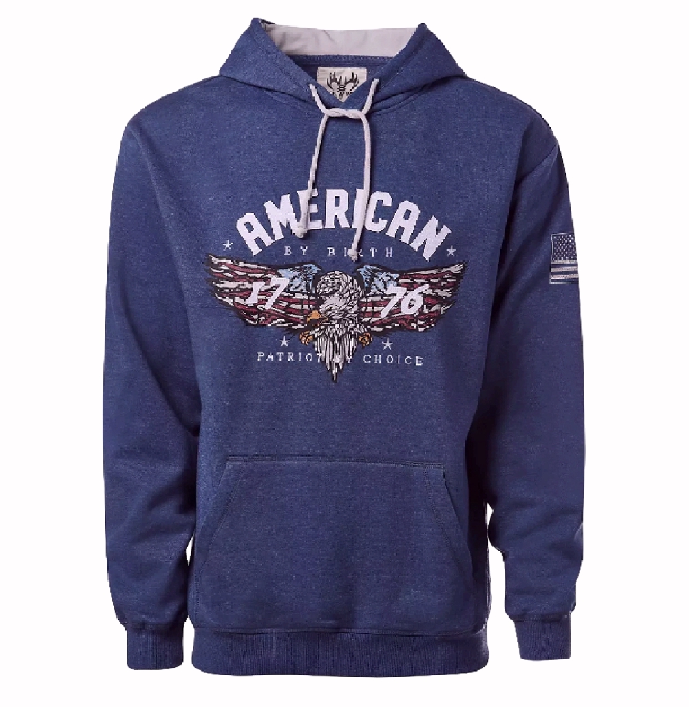Show ’em who you are in our American By Birth Patriot By Choice Pullover Hoodie. Constructed of a 60/40 cotton-polyester blend, this hoodie assures that you’ll stay warm while looking cool.