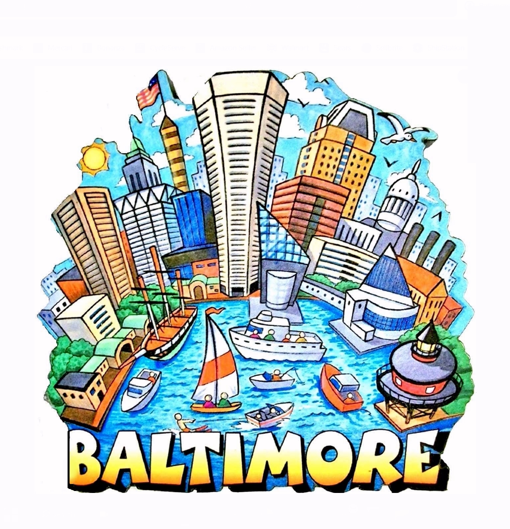 Baltimore Cartoon Skyline Refrigerator Die Cut Magnet