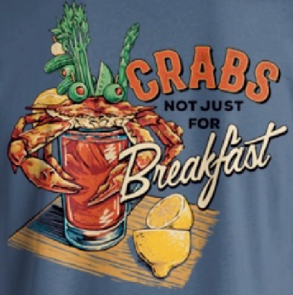 Nothing is better for breakfast than a nice cool Bloody Mary with a fresh Maryland crab. Celebrate good times with our Bloody Mary Crabs Not Just For Breakfast Short Sleeve T-Shirt. This beautiful unisex adult short-sleeve shirt is constructed of 100% pre-shrunk ring spun 6 ounce cotton.
