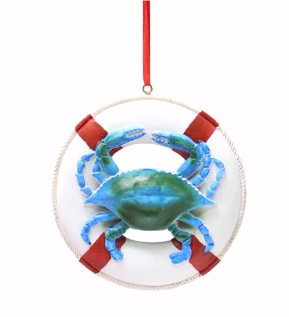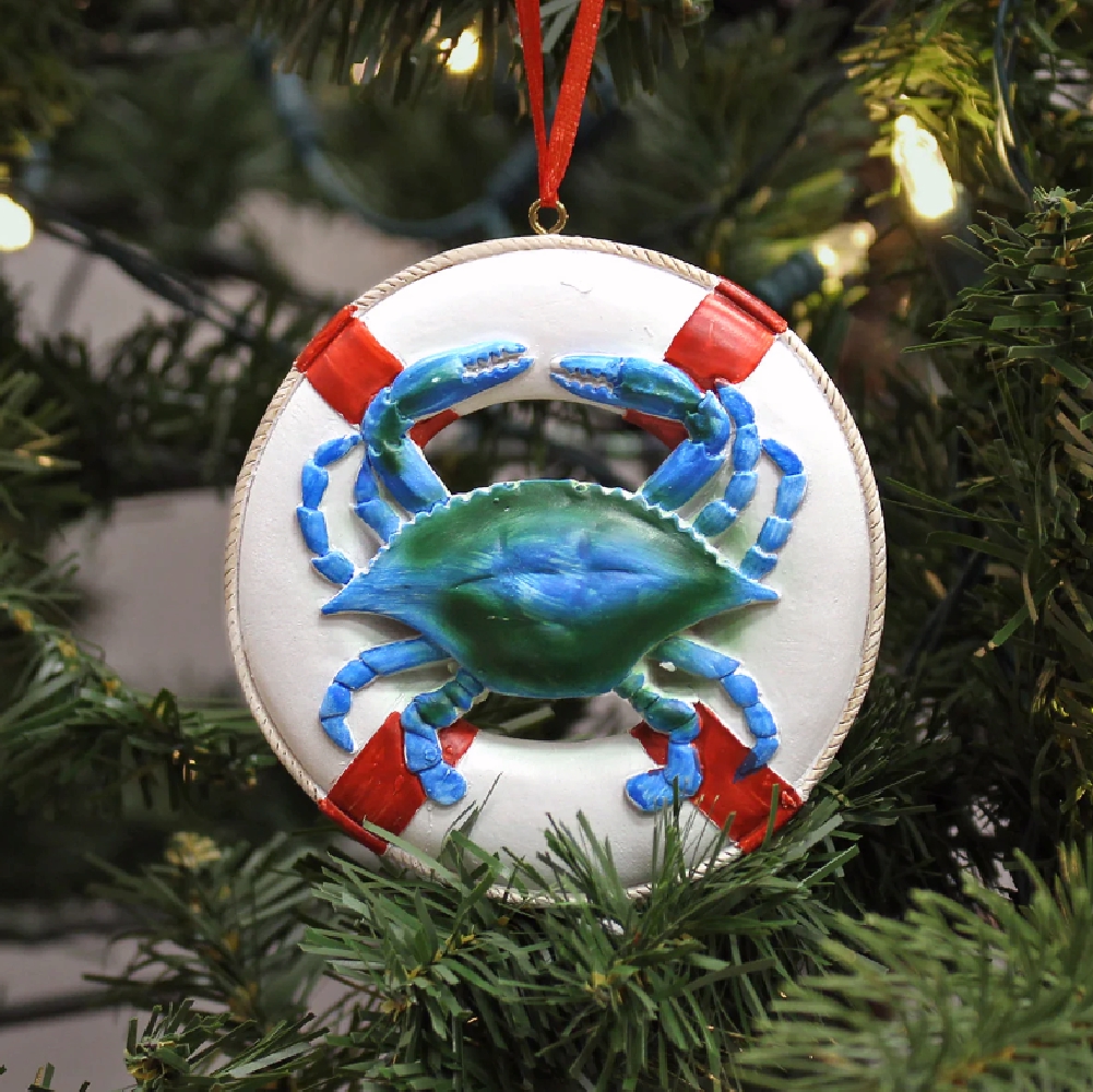 Deck out your tree by hanging our unique Blue Crab Life Preserver Ornament and celebrate the holiday season.