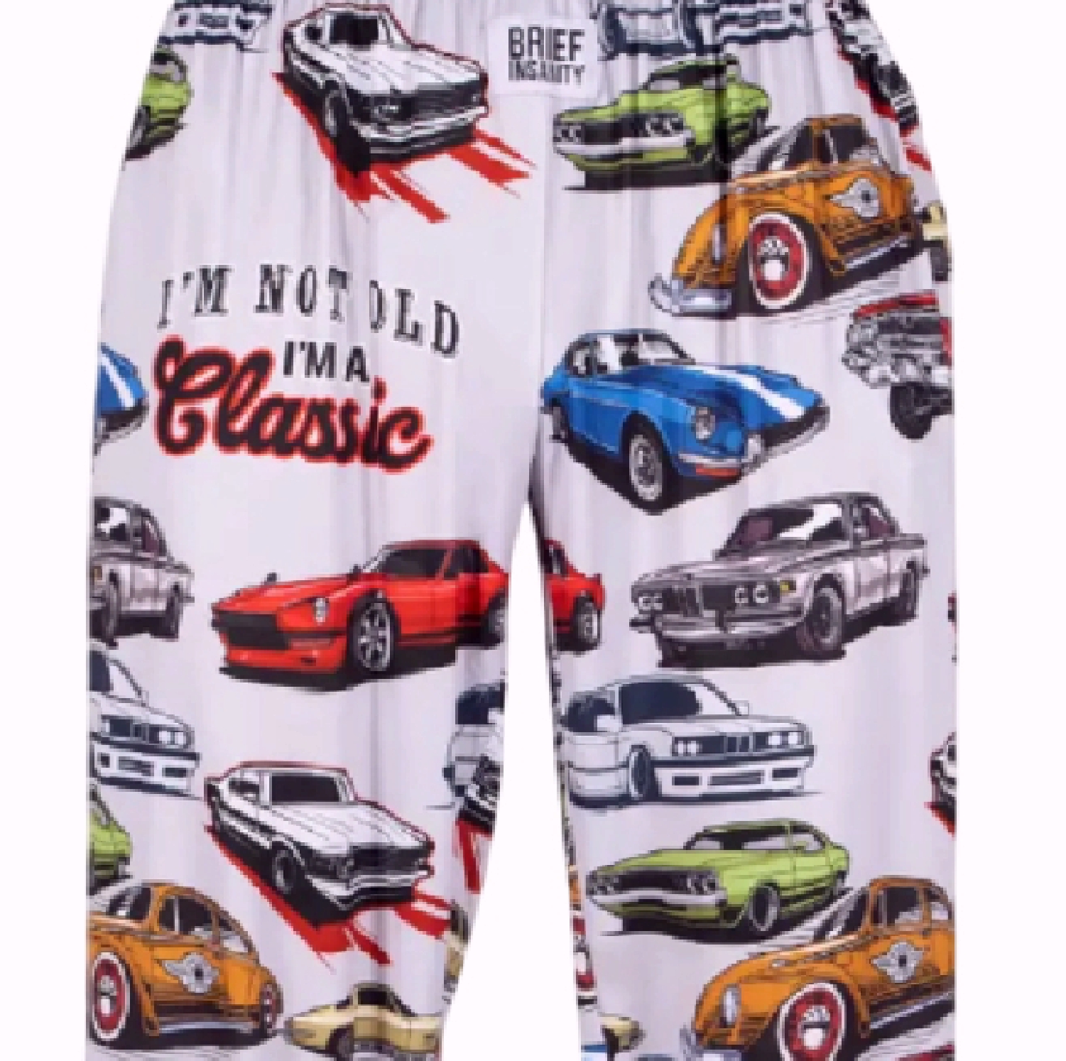 Enjoy your leisure time with humor while wearing these Brief Insanity I’m Not Old I’m a Classic Lounge Pants Pajamas.  Perfect for lounging around the home or a restfull nap/sleep all while reminding yourself of classic cars.  This material is buttery soft and free flowing Items fit true to size, so we recommend ordering your typical size.  The innovative material used to create this product is a specialized polyester blend that mimics the temperature of your body. The light-weight and breathable material provides all-day comfort while wearing.