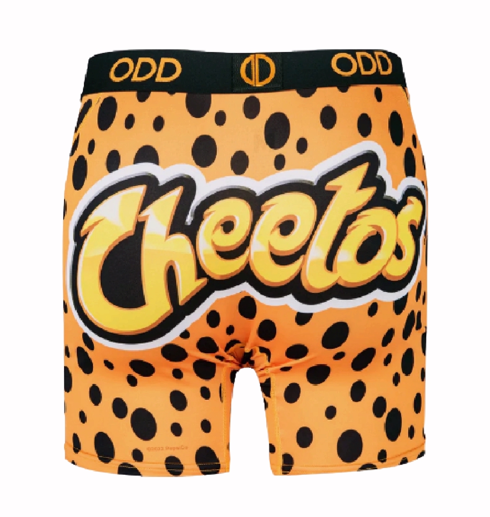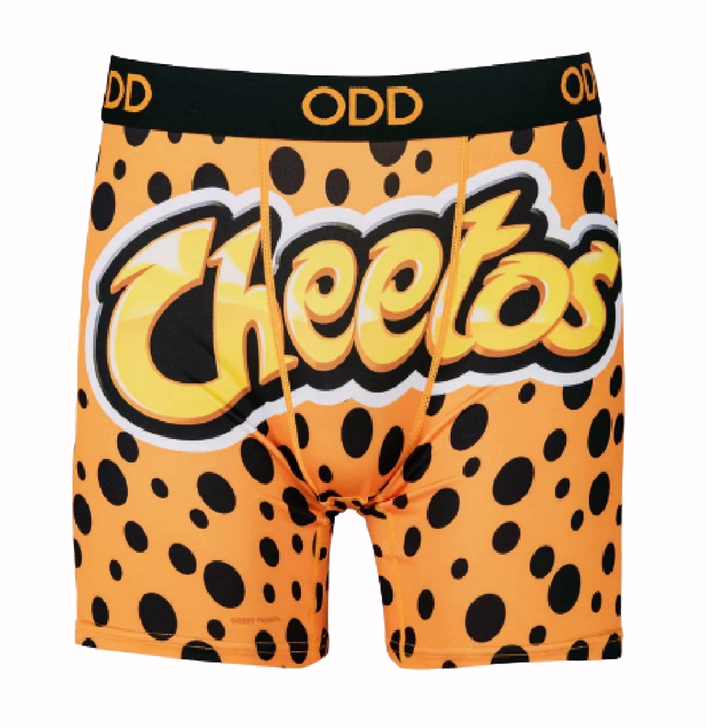 These boxer briefs came straight from the chips aisle. Shop our officially licensed collection of Frito Lay boxer briefs featuring these orange and black Cheetos Boxer Shorts Underwear Briefs. Each pair of briefs is designed with a high-quality fabric blend that keeps you dry while preventing orders with a flexible waistband. Complete with a 3D no-fly pouch and all over stretch that provides support and freedom and movement.