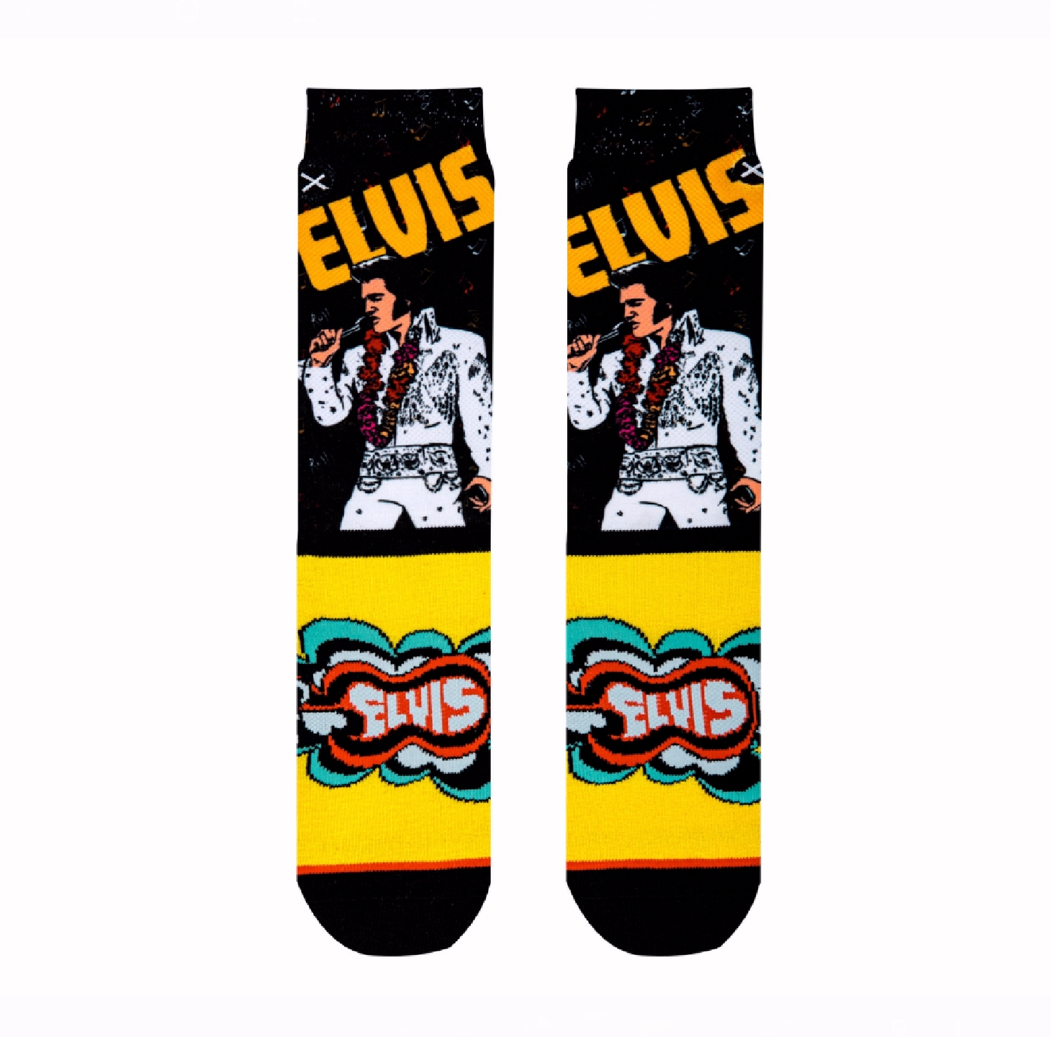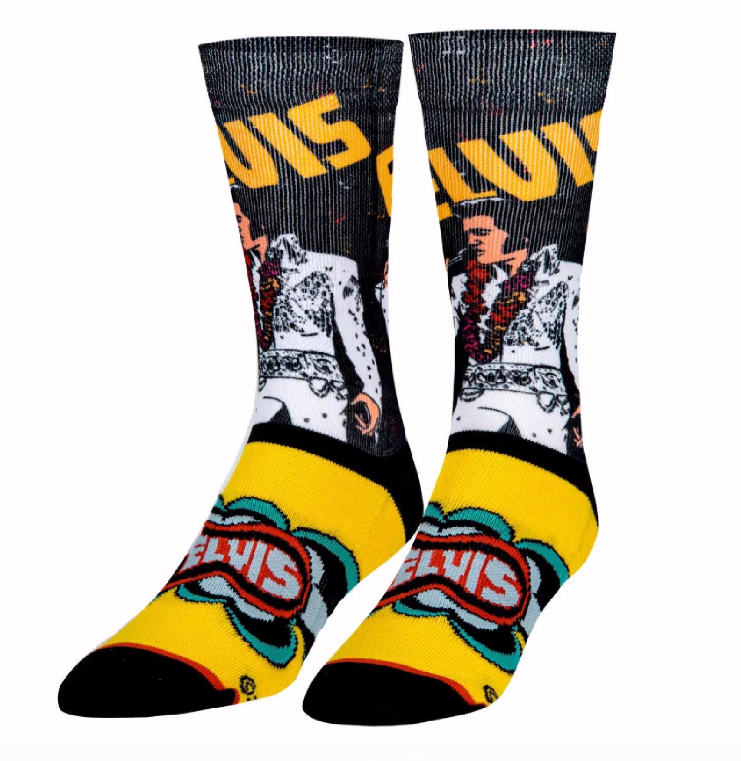 Get your toes tapping while wearing these Elvis Rock and Roll Athletic Crew Socks. These crew socks features a singin Elvis. The double layered cotton bottom foot maximizes cushioning and the thickened toe and heel offers extra comfort and pain relief.