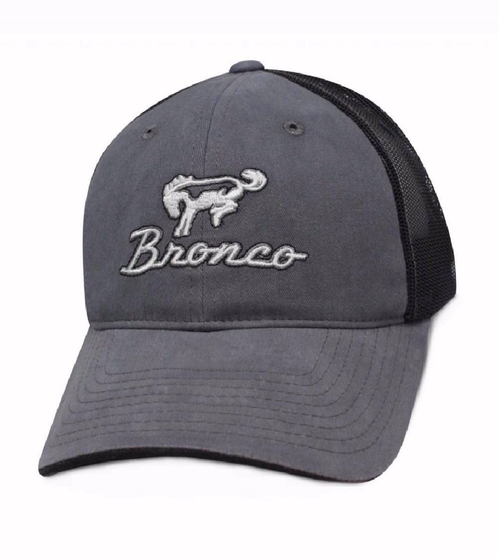 Show ’em who you are from head to toe with our Ford Bronco Graphite and Black Mesh Cap Hat.