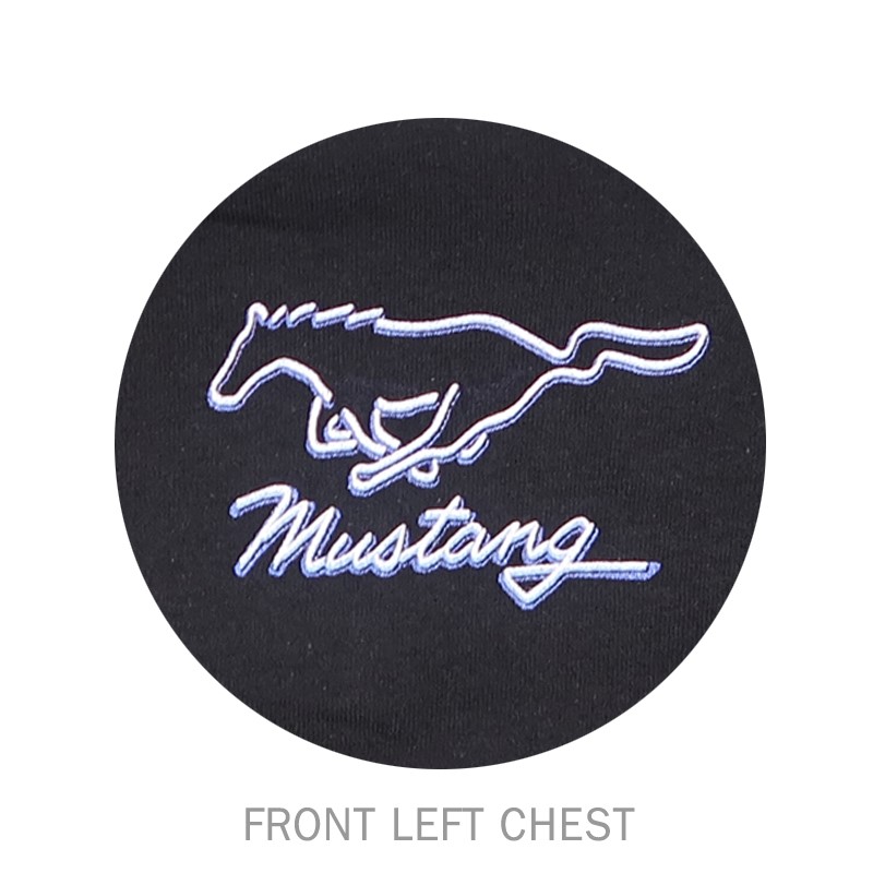 - Printed on both back and front left chest