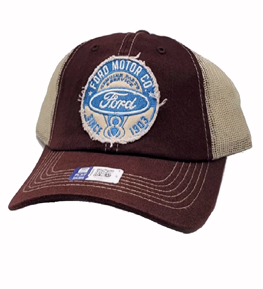 Show everyone your pride with your ride in this Ford Vintage V8 Embroidered Patch Distressed Style Mesh Cap Hat. Featuring that vintage Ford V8 oval embroidered patch on the crown.