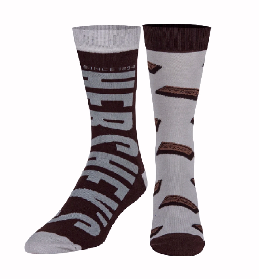 These sweet chocolatey Hershey’s Bars socks are almost as delieicous as the candy itself. These Hersheys Bar Split Athletic Crew Socks are designed with the Hershey’s logo on one sock and chocolate bars on the other. The soft, smooth cotton will keep your toes warm while you munch on Hershey’s candy.