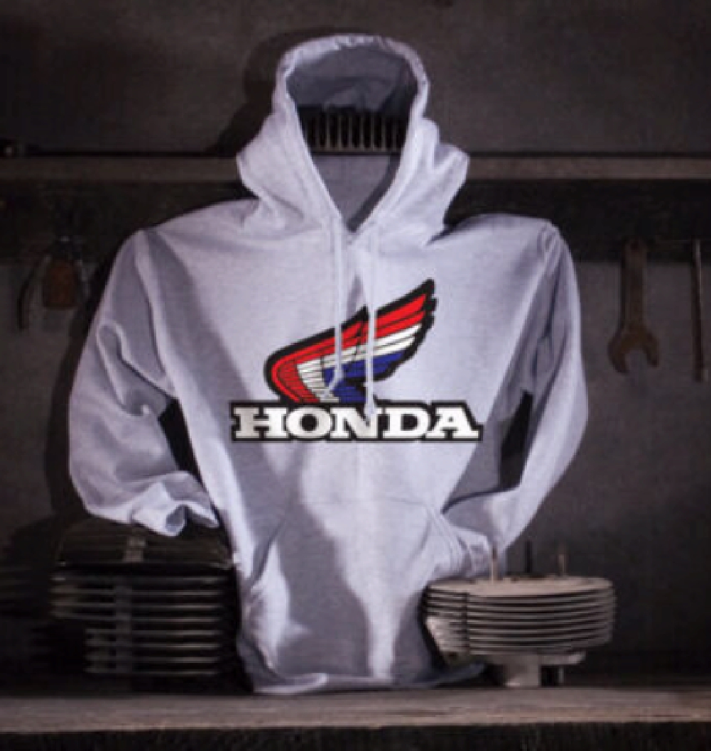 Stay warm with this beautiful, heavyweight Honda Logo Gray Red-White-Blue Pullover Hoodie. Perfect for taking your bike out for a ride, a race– or just chillin’ with friends.