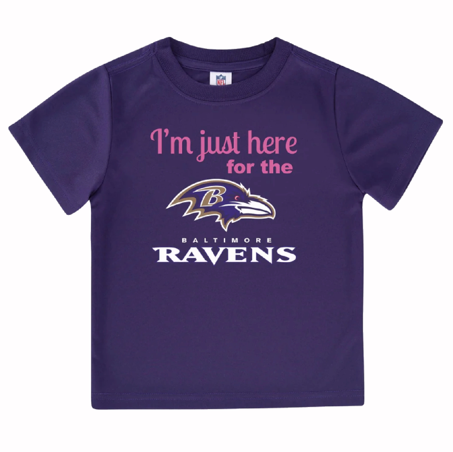 Show your love for your favorite team while keeping your toddler stylin with this I’m Just Here For The Baltimore Ravens Gerber Short Sleeve Toddler T-Shirt.