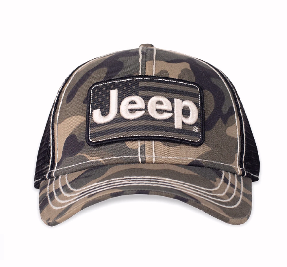 - Fabric Front with Embroidered Appliqué Jeep® Logo & USA Flag Patch
