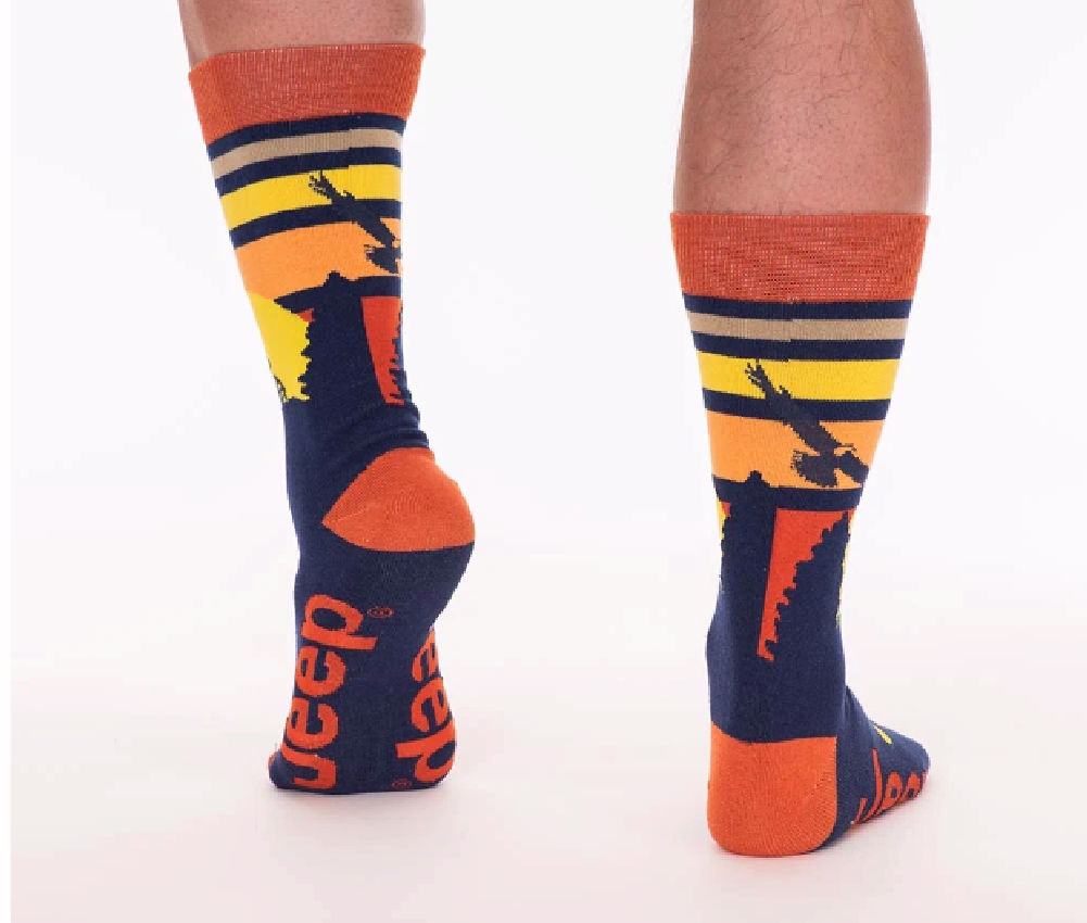 You’ll be the life of the party in these snazzy Jeep® Sunset Eagle Dress Socks. Made with spandex for a perfect fit and a cotton/poly blend to keep you dry & comfortable – these socks will quickly become your favorites.