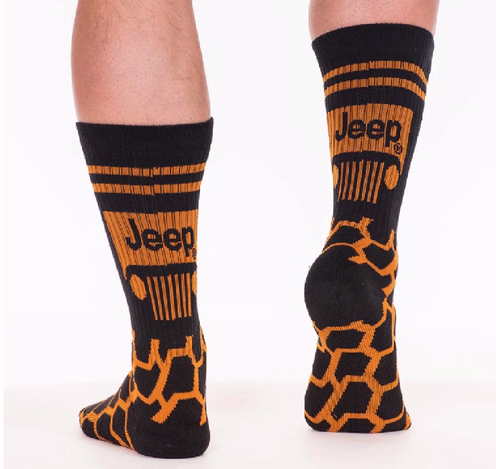 Strut your stuff in these one-of-a-kind Jeep® Tread Crew Athletic Socks. Built with comfort in mind – these socks are soft yet durable. Featuring the iconic Jeep® Grille on the front calf & treads all over – these socks are ready to hit the road!