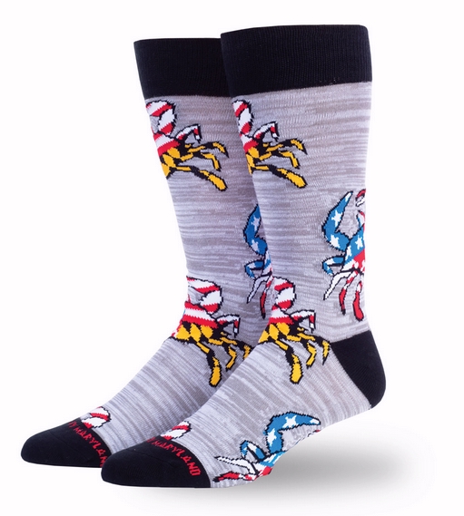 Embrace your American spirit and Marylander pride with these uniquely designed Maryland Ameriland Crab Dress Socks! Exceptionally soft and ultra-comfortable, these socks are the softest bit of foot heaven you can find. Whether you’re out laxin’ or home relaxin’, these are toe-tally perfect for all occasions!