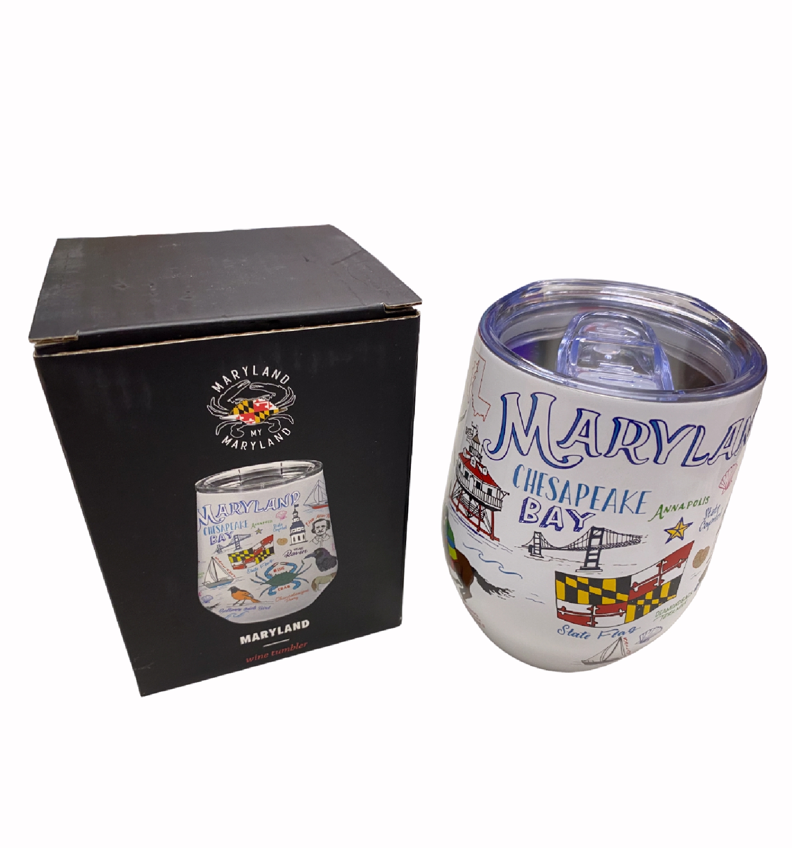 Eat, drink and be merry while you enjoy showing off your Old Line State pride with our Maryland Chesapeake Bay Icons Metal Hot/Cold Wine 12 Ounce Tumbler. Perfect for drinking hot or cold drinks while traveling.