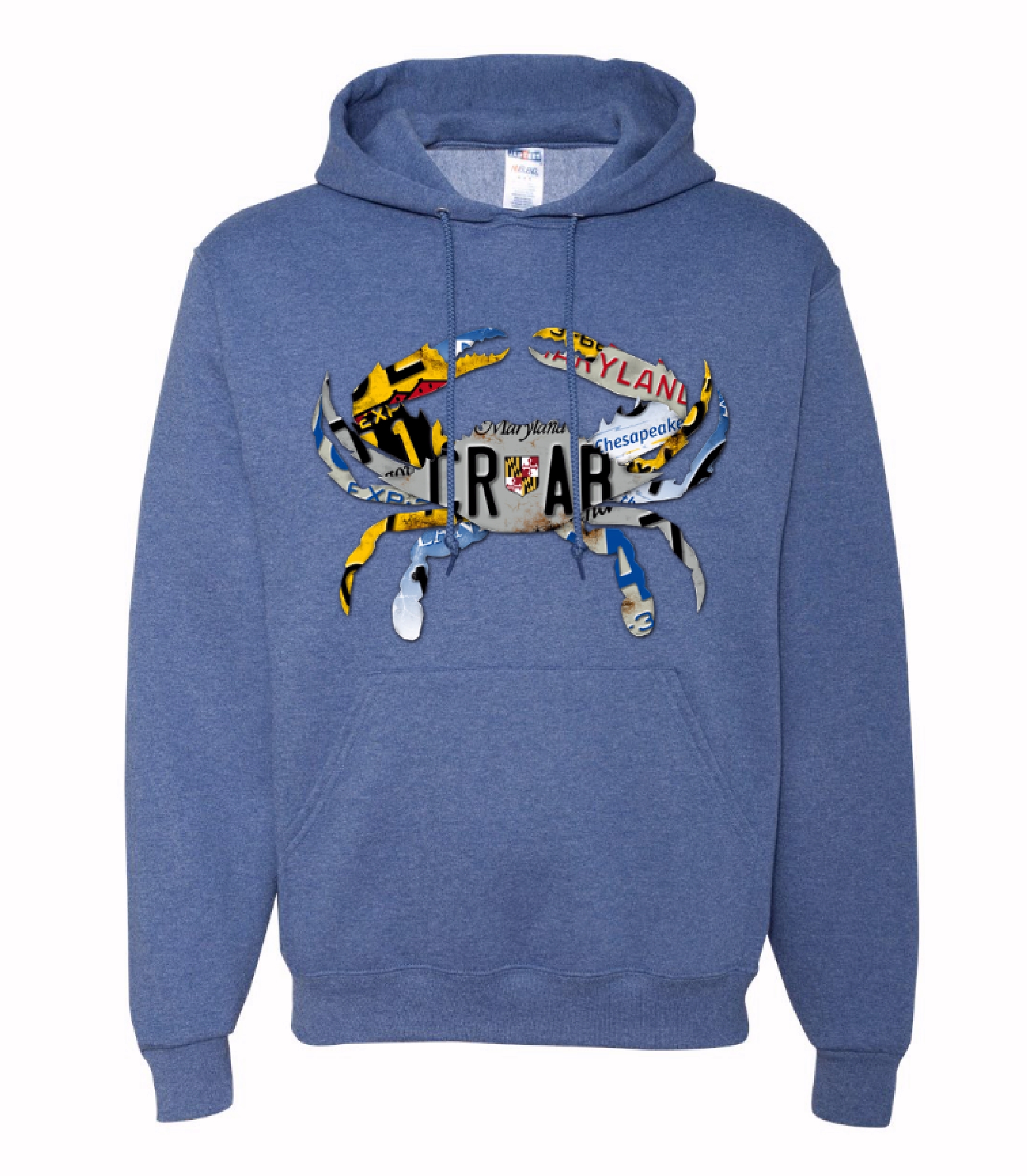 Show your regional pride of Chesapeake crabs with this unisex Maryland Crab License Plate Pullover Hoodie. Constructed of 100% pre-shrunk ring spun 8 ounce cotton.