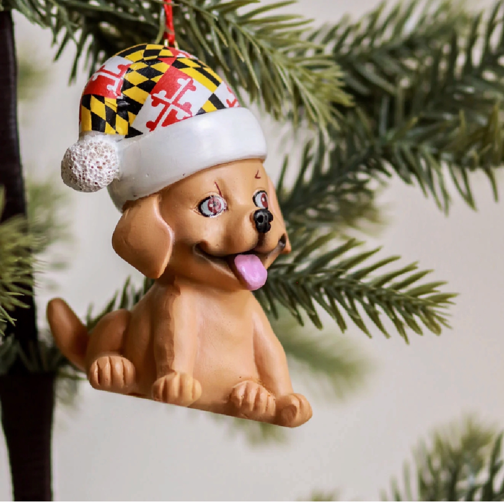 Deck out your tree by hanging our unique Maryland Flag Dog Tan Ornament and celebrate the holiday season.