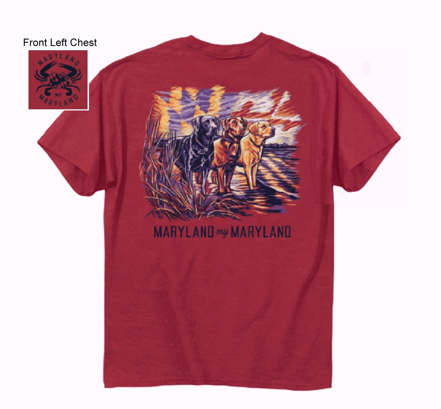 Maryland Flag Sunset Sky and Labs Short Sleeve T-Shirt