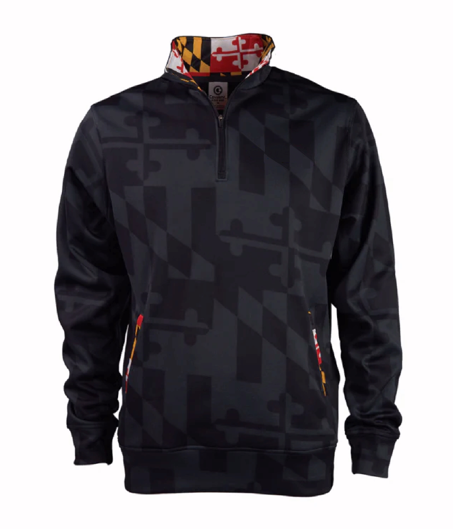 Maryland flag pattern sublimated print on hood liner and tops of pockets