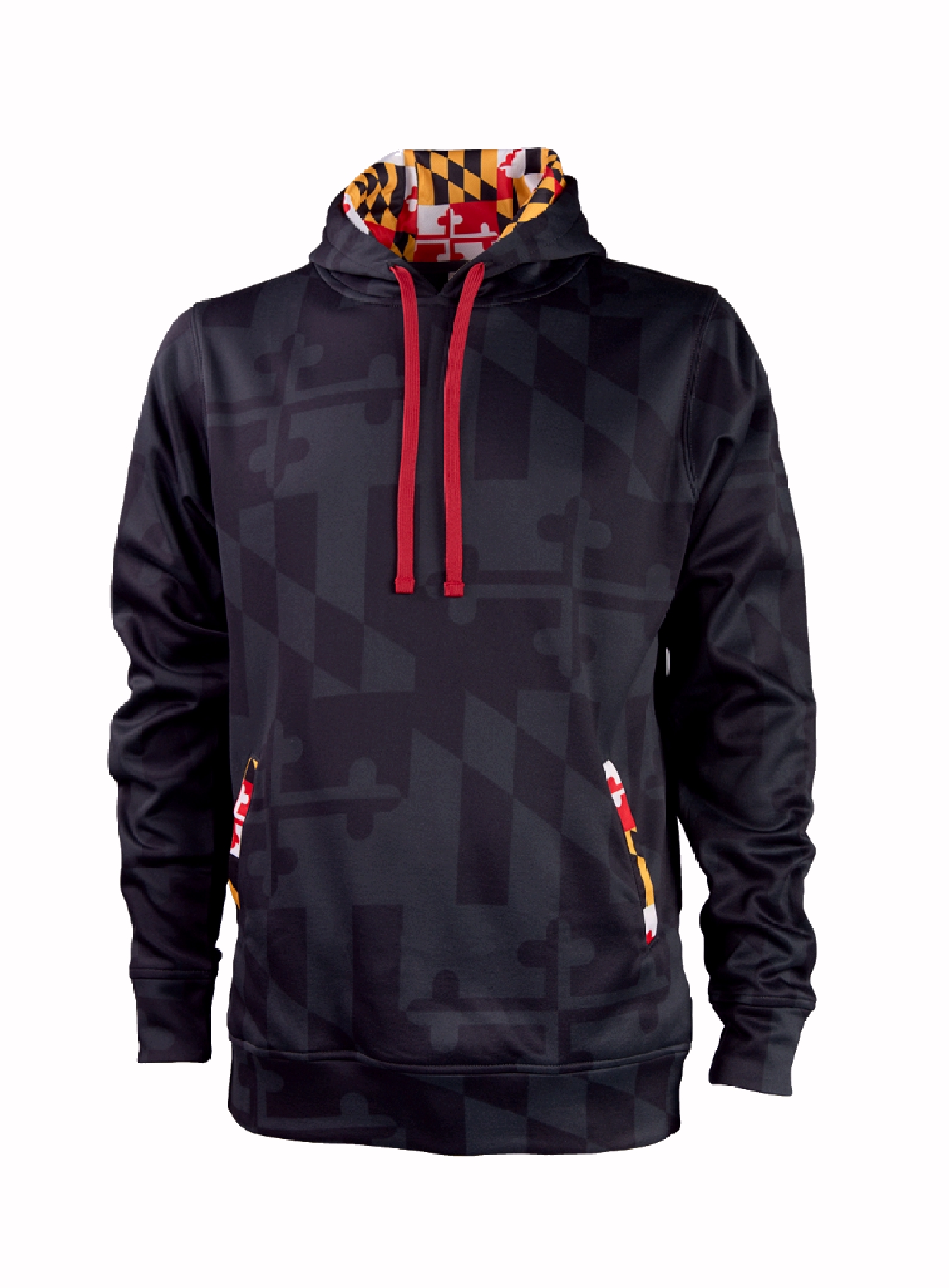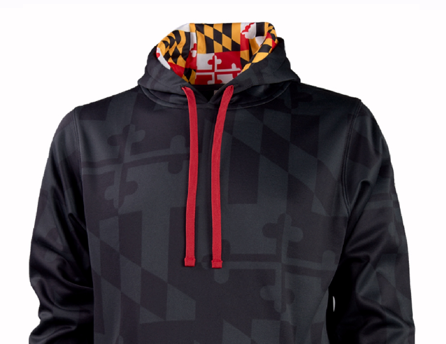 Drawstring hood with Maryland flag graphic print