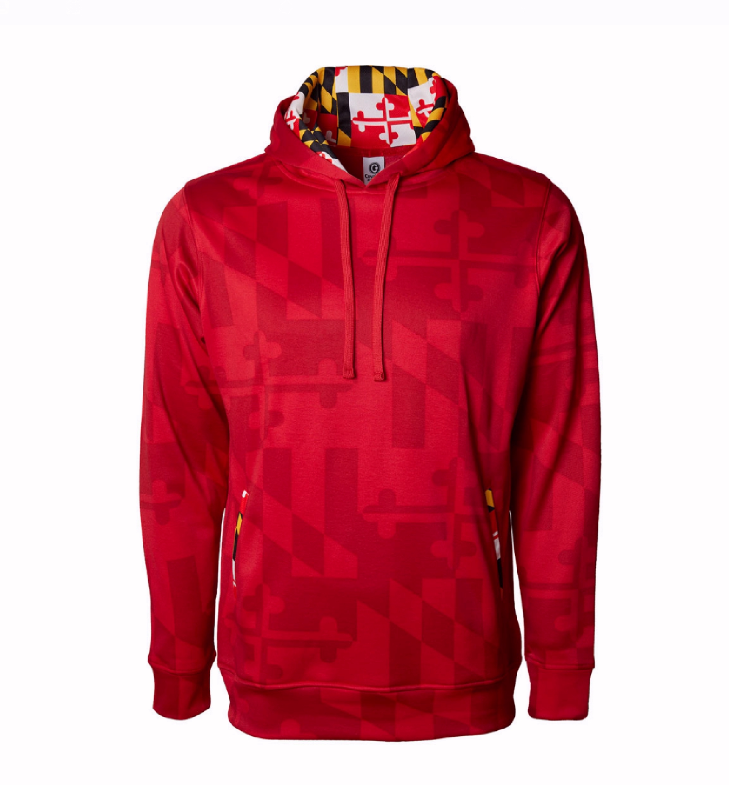 Drawstring hood with Maryland flag graphic print