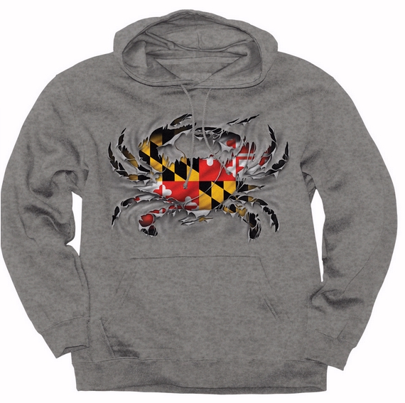 This hoodie radiates good ole fashioned Maryland pride! This Maryland Ripped Crab Pullover Hoodie is constructed of a 49/51 cotton-polyester fleece blend with 2-ply hood, this hoodie assures that you’ll stay warm on breezy Maryland nights.
