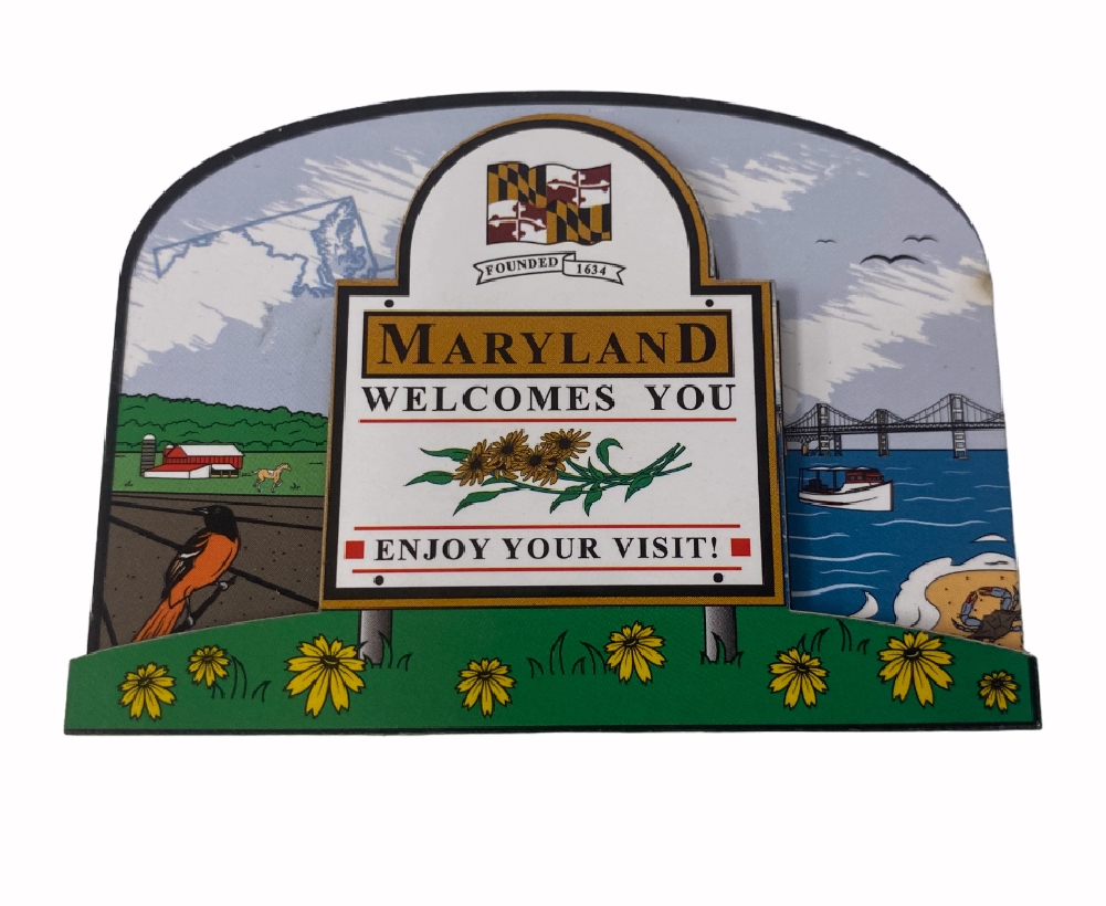 Our Maryland Welcomes You Refrigerator Die Cut Magnet is perfect for holding up your child’s artwork, pictures, grade reports, recipes and more on your refrigerator or any metal surface.