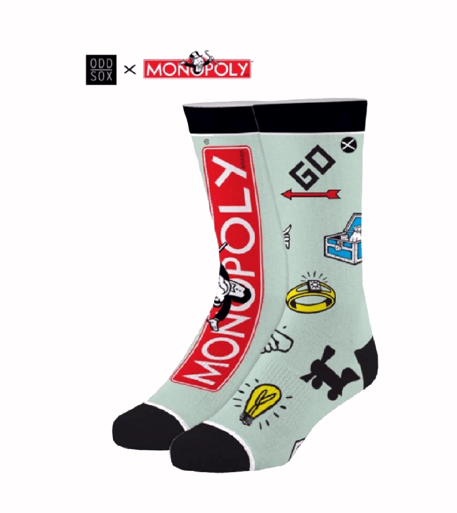 Enjoy remembering good times with your family playing the Monopoly game with these Monopoly Split Style Athletic Crew Socks. Featuring a full graphic print of the Monolpoy logo on one sock with Monopoly icons on the other. The 100% premium cotton blend enhances comfortability with a double layered cotton bottom to improve cushioning and pain relief.