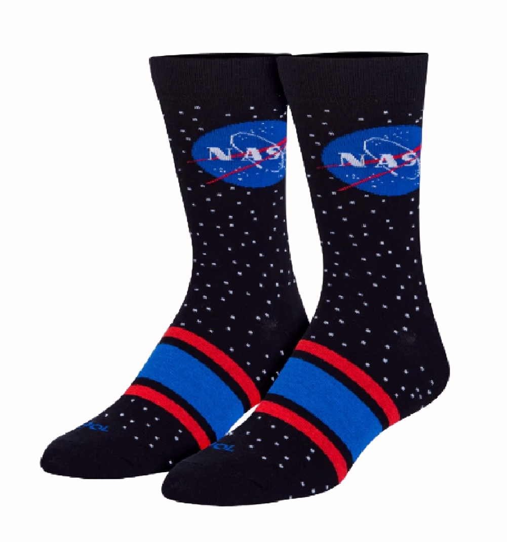 These NASA Stars Athletic Crew Socks are perfect for any science enthusiast or future astronaut. These black crew socks feature a starry sky and red and blue stripes with the NASA logo. Features 100% premium cotton for enhanced comfortability and a thickened toe and heel for maxed cushioning.