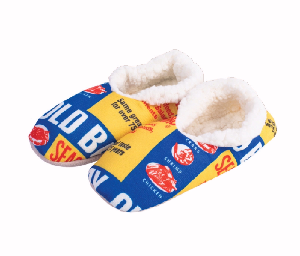 Kick your feet up and relax with our exceptionally soft and super stylish Old Bay Can Logo Slippers.