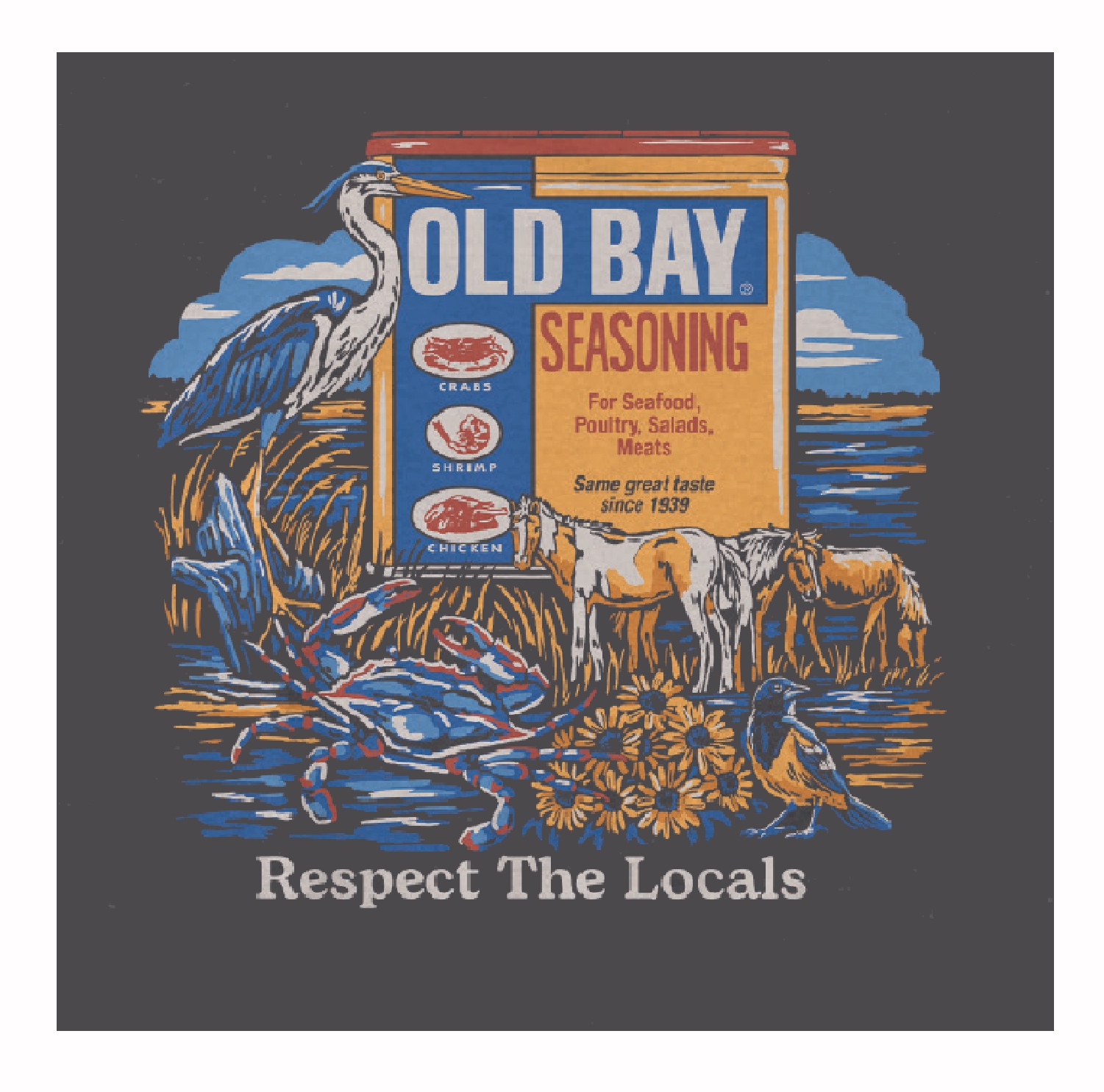 Show off your love for the outdoors and Old Bay with our Old Bay Respect the Locals Wildlife Short Sleeve T-Shirt. Made of 100% pre-shrunk cotton, this tee provides the softness you crave, while the taped neck and shoulder seams offer premium durability.