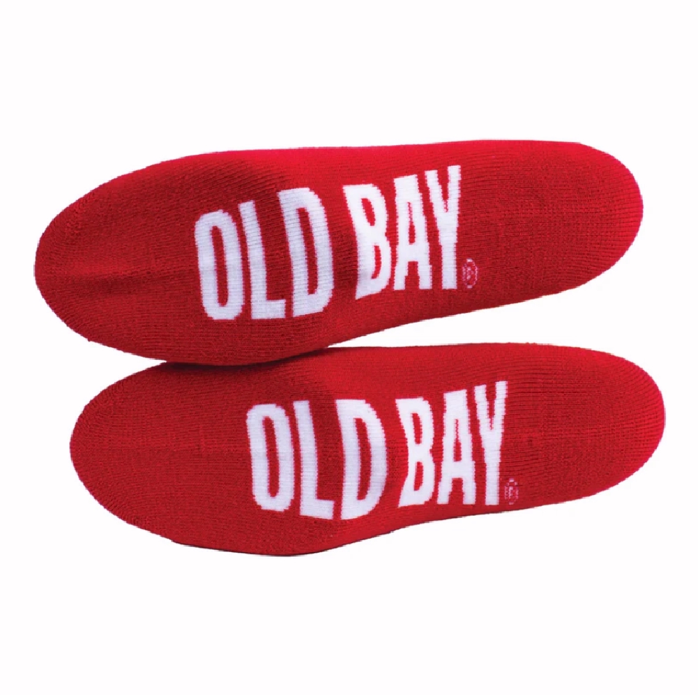 Spice up your wardrobe with our Old Bay Spice and Crabs Can Logo Crew Socks! Exceptionally soft and ultra-comfortable, these socks are the softest bit of foot heaven you can find. “Old Bay” printed on the bottom of the socks.