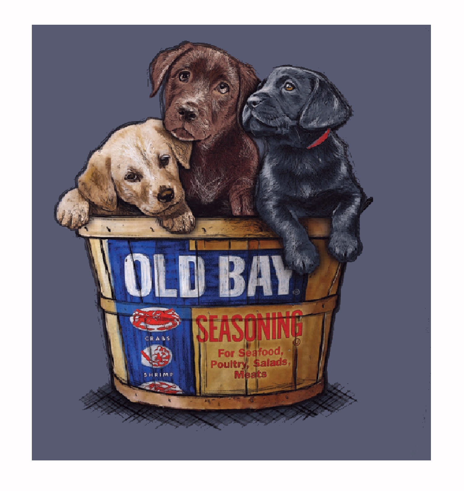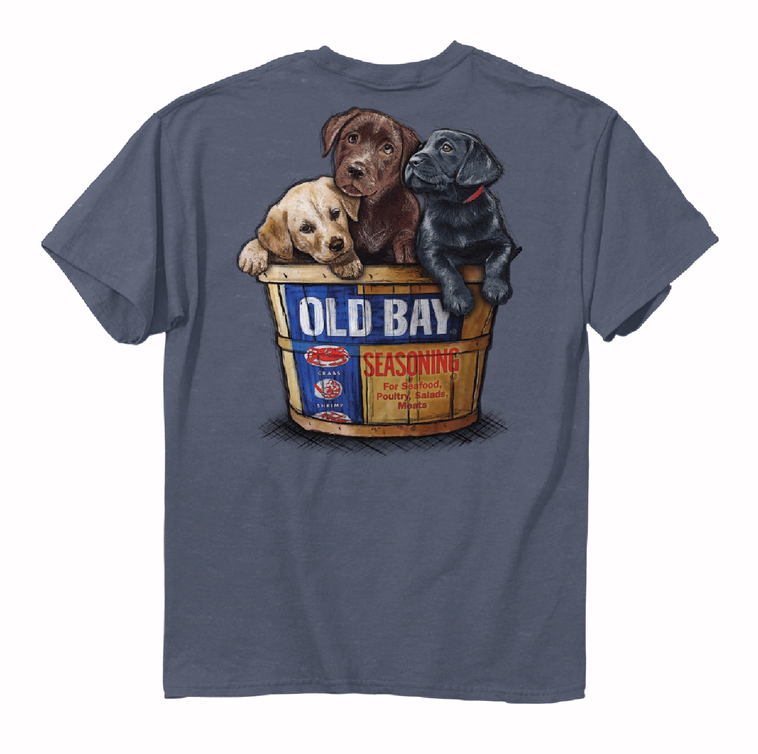 Show off your love for pups and Old Bay pride with our Old Bay Three Puppies in a Bushel Short Sleeve T-Shirt. Made of 100% pre-shrunk cotton, this tee provides the softness you crave, while the taped neck and shoulder seams offer premium durability.