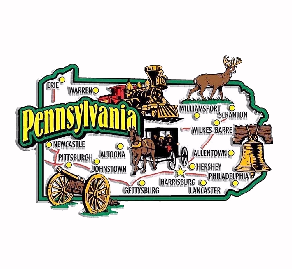 Our Pennsylvania State Symbols Refrigerator Die Cut Magnet is perfect for holding up your child’s artwork, pictures, grade reports, recipes and more on your refrigerator or any metal surface.