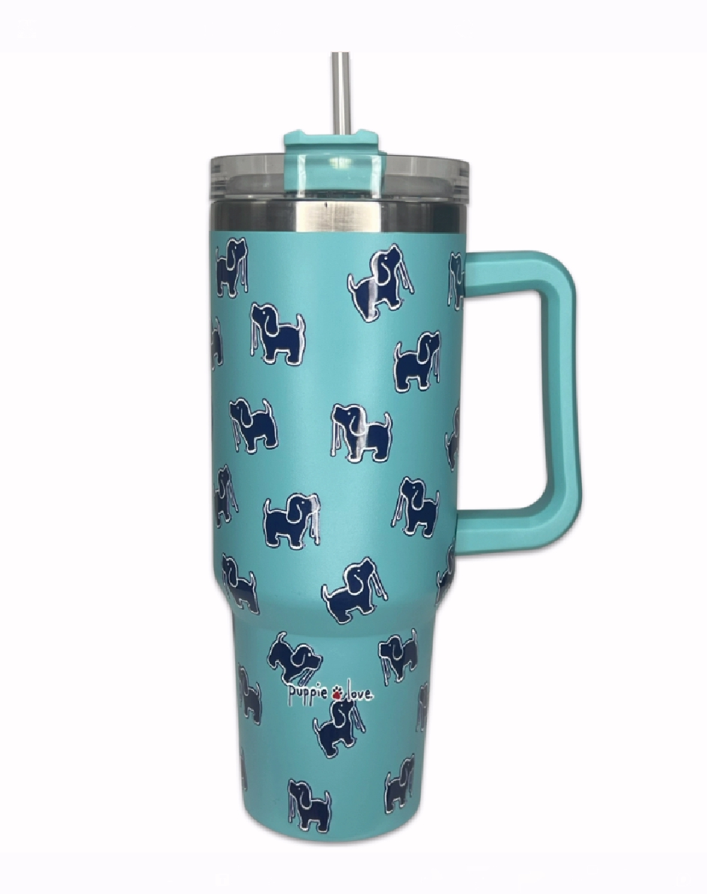 Puppie Love Dog 40 ounce Light Green Blue Stainless Steel Travel Tumbler