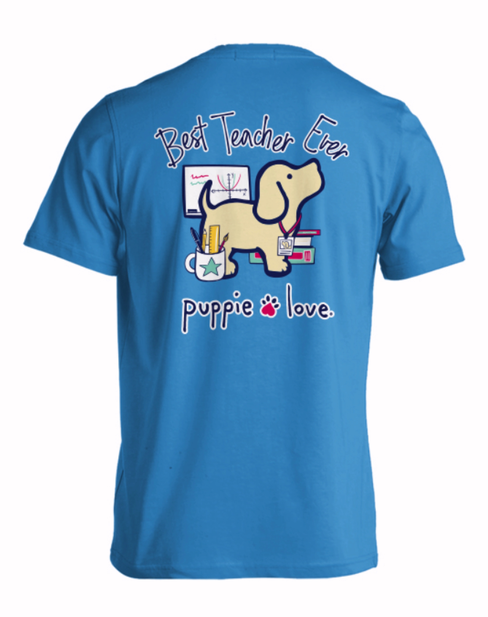 Show your love for your best friend while honoring your favorite teacher with this Puppie Love Dog Best Teacher Ever Pup Short Sleeve T-Shirt. This unisex adult short-sleeve shirt is constructed of 100% pre-shrunk ring spun 6 ounce cotton.  Puppie Love was started 2017 with the mission to donate 10% of their profits to no kill shelters to help the care and adoption of animals.  With the purchase of this shirt you will not only receive a high-quality and durable shirt, but you will also assist numerous animals in no-kill shelters find new loving homes.