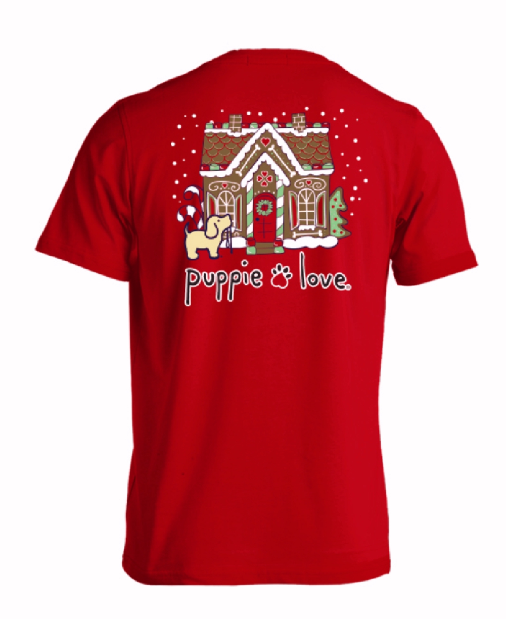 Puppie Love Dog Christmas Gingerbread House Pup Short Sleeve T-Shirt