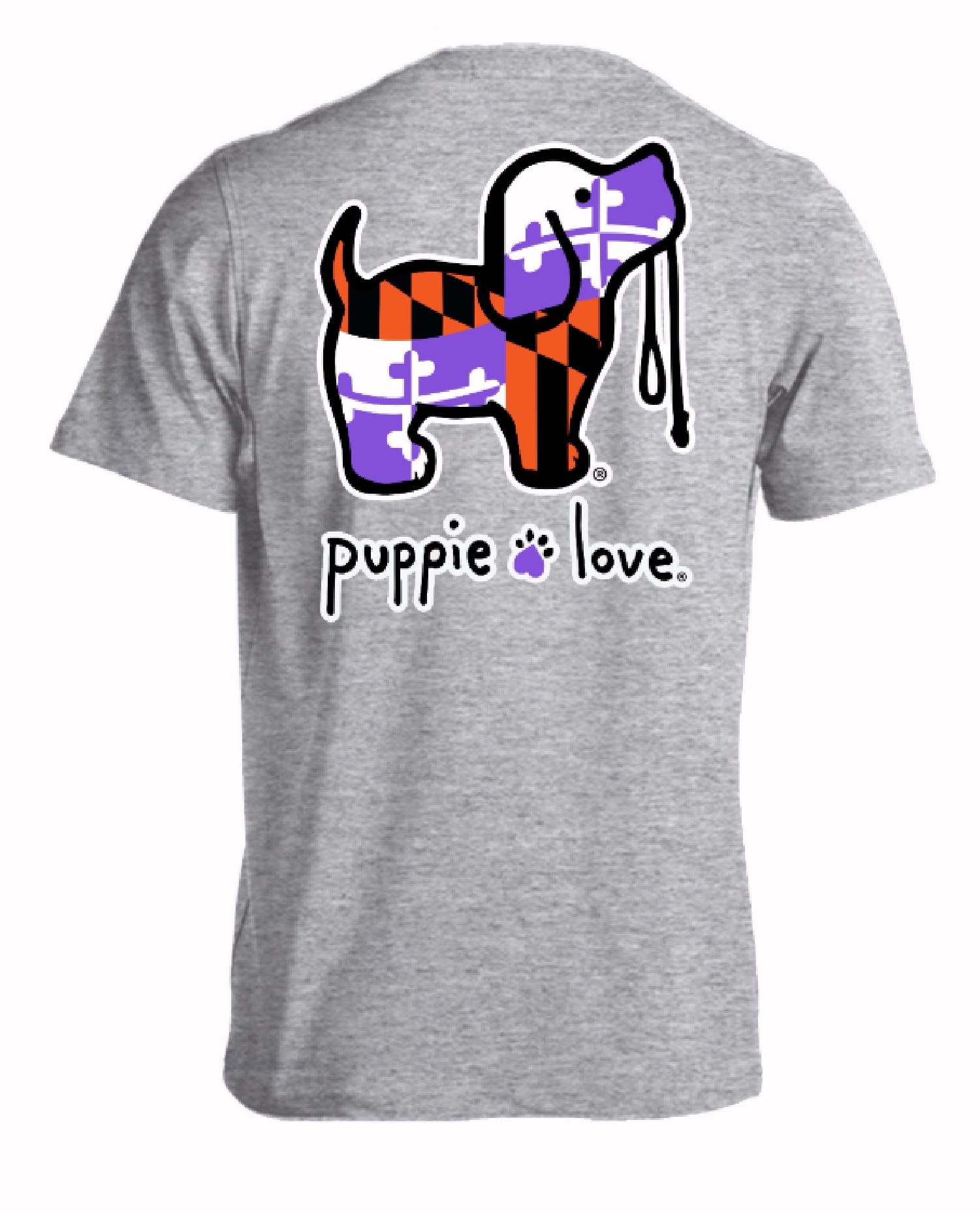Puppie Love Dog Orange and Purple Sports Maryland Flag Short Sleeve T-Shirt