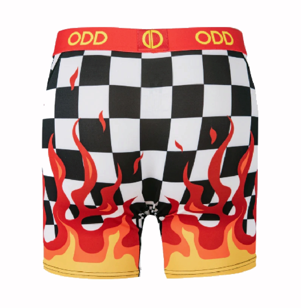 Show your street style with our fire checkered flames boxer briefs for men. These black and white Racing Checkered Flag with Flames Boxer Shorts Underwear Briefs also have red, yellow and orange flames. Each pair of briefs is designed with a high-quality fabric blend that keeps you dry while preventing orders with a flexible waistband. Complete with a 3D no-fly pouch and all over stretch that provides support and freedom and movement.