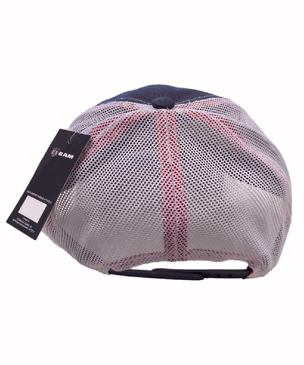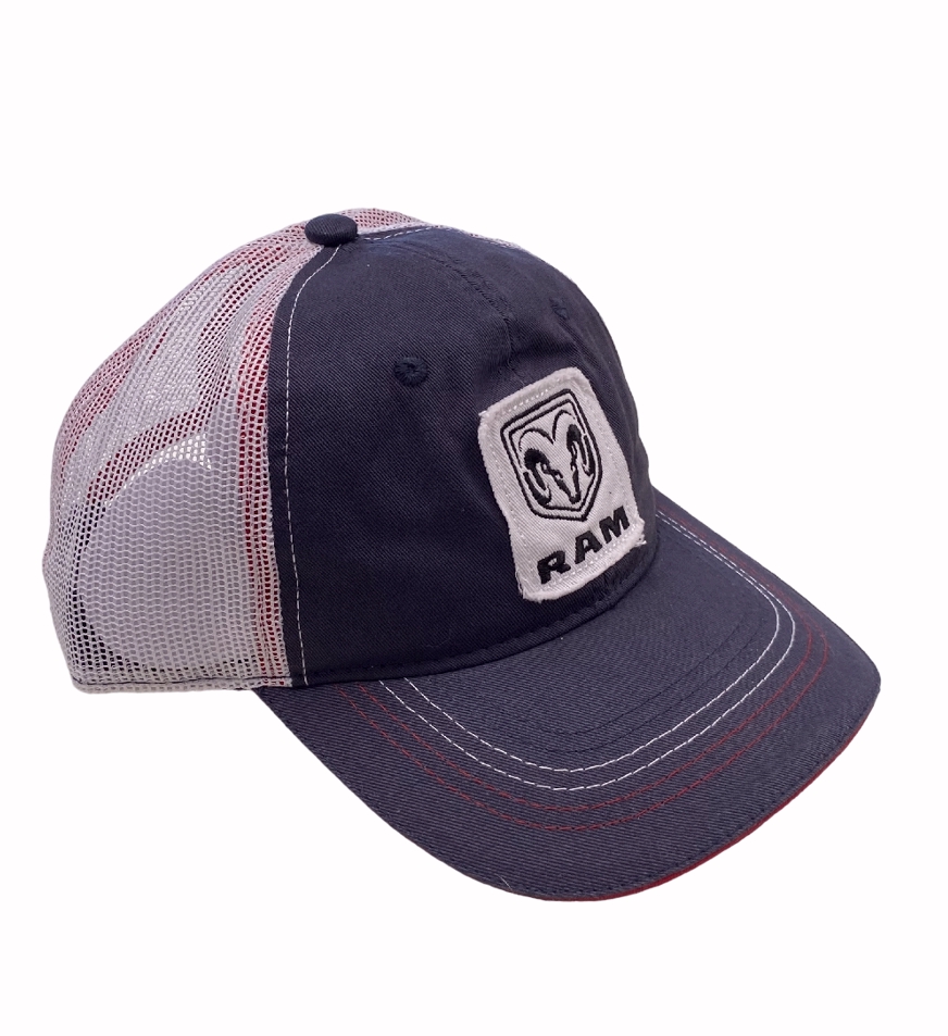 Show your pride in your ride with this RAM Patch Navy Grey with Red Trim Mesh Back Cap Hat.