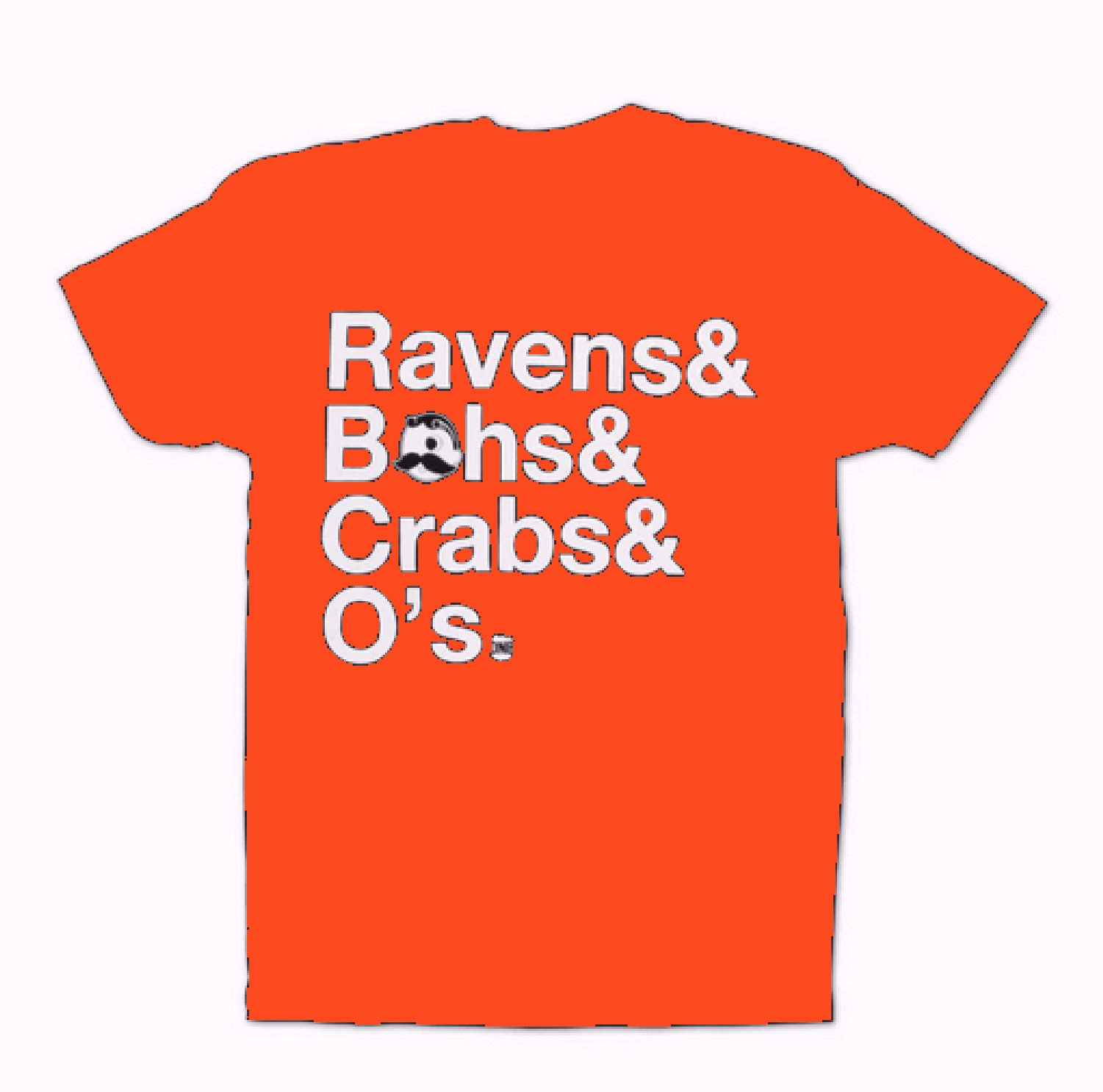 Ravens Bohs Crabs and Oh’s Orange Short Sleeve T-Shirt