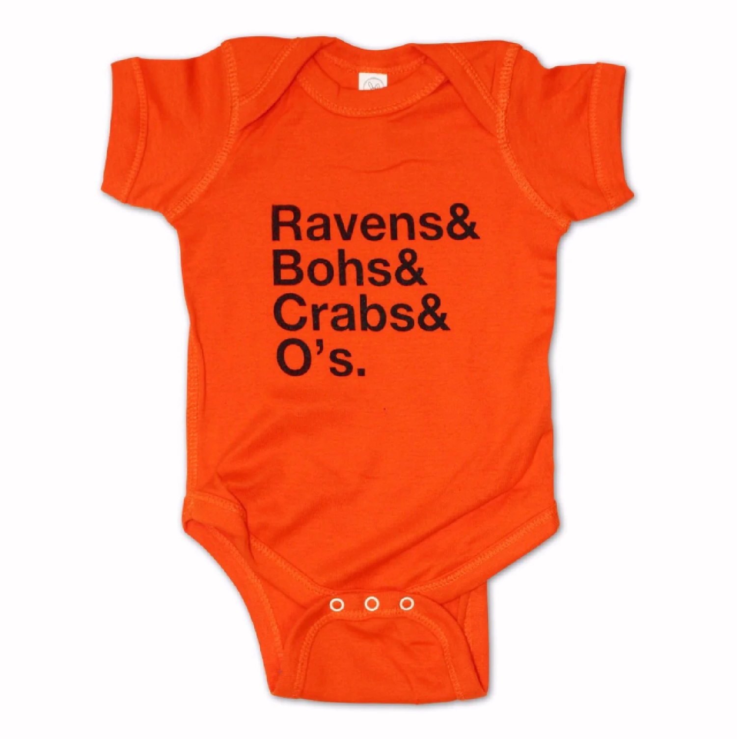 Show your Maryland pride with this Ravens Bohs Crabs Os Maryland Crab Orange Baby Infant Jersey Romper One-Piece Snap Bodysuit It provides superior softness, while the premium screen printing offers premium durability.