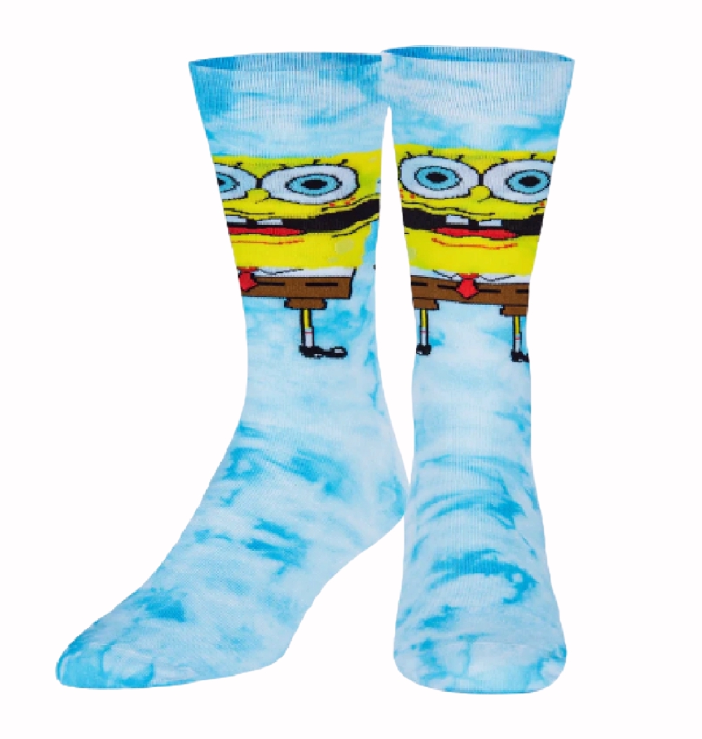 Bring it around town and shop our licensed collection of Nickelodeon and SpongeBob socks. These blue and white SpongeBob Wavy Tie Dye Athletic Crew Socks feature a wavy full graphic print of Spongebob. The 100% premium cotton blend enhances comfortability with a double layered cotton bottom to improve cushioning and pain relief.
