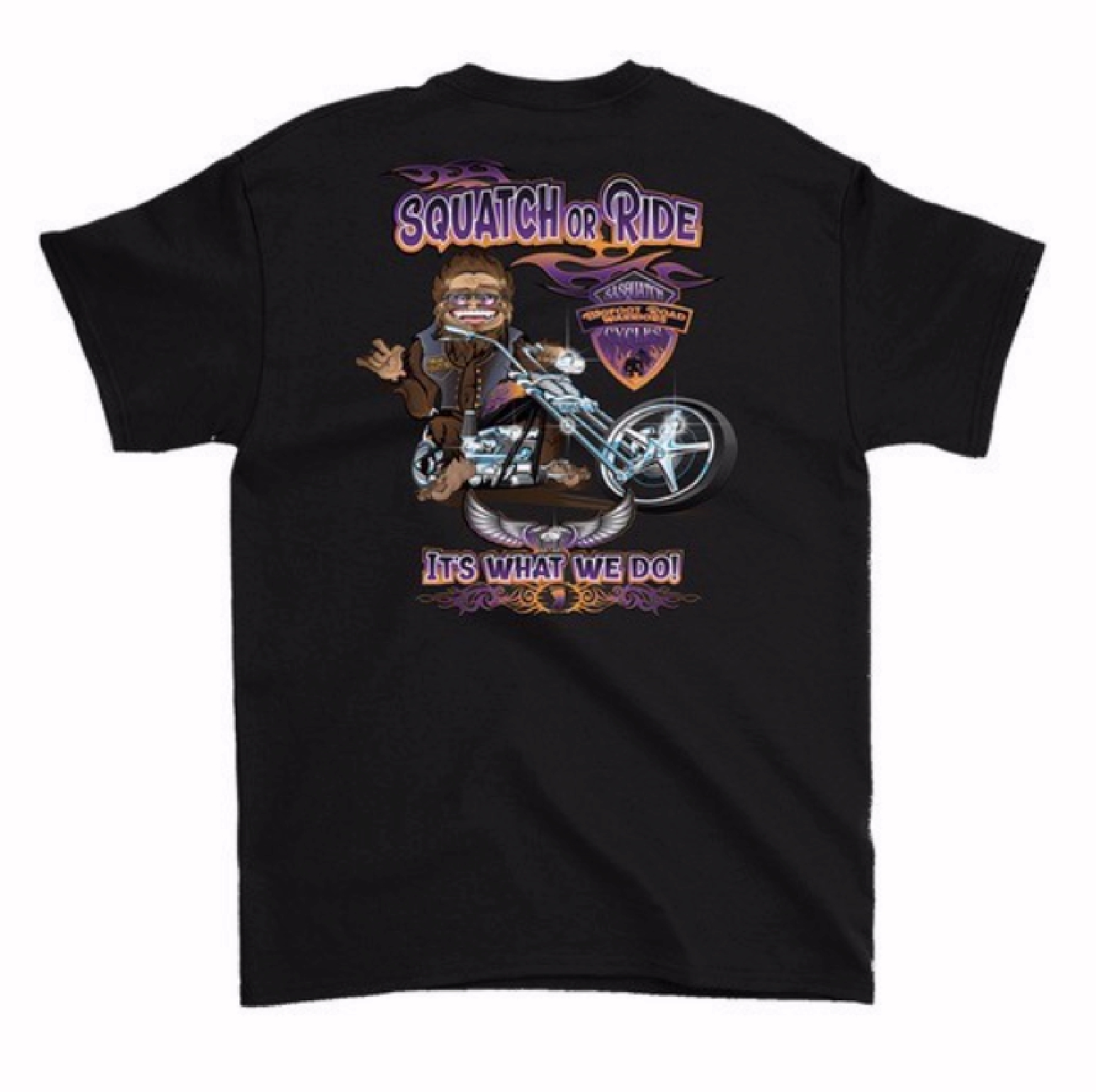 Add this humorous Sasquatch shirt to your wardrobe. This Squatch or Ride It is What We Do Bigfoot Sasquatch Road Warrior Short Sleeve T-Shirt includes a front print ove the front left chest.