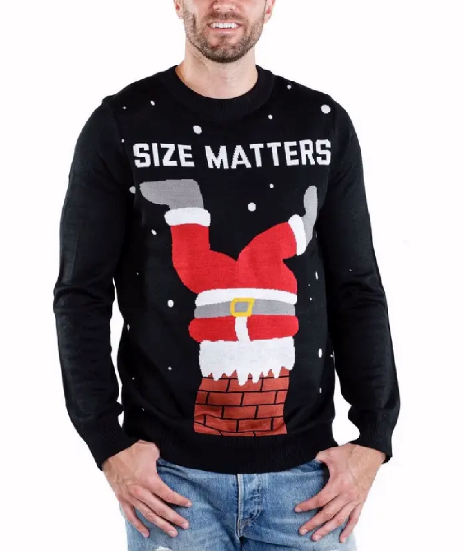 Stuck Santa Size Matters Humorous Christmas Sweater