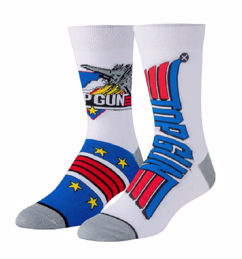 When you feel the need the speed and don’t even know what second place is then you are ready to be crowned the Top Gun! These Top Gun F-14 Athletic Crew Socks are built for both comfort and speed so get yours before they fly by. These white crew socks feature a graphic knitted image of the Top Gun F-14 fighter pilot and the colorful title in red, blue and gold.
