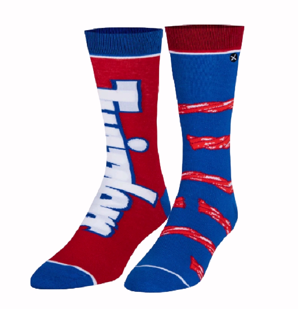 Add a sweet fashionable twist to your fashion sense! These red and blue Twizzlers Split Athletic Crew Socks feature the iconic Twizzlers logo on one sock accented with Twizzlers sweet treats on the other. The premium cotton blend offers a double layered cotton bottom with maximum cushioning and pain relief.