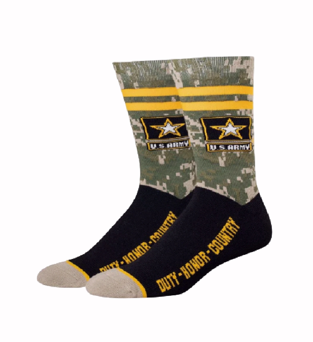 The U.S. Army lives by one code: Duty, Honor and Country. Show your support for our Armed Forces in these U.S. Army Duty, Honor, Country Athletic Crew Socks featuring the U.S. Army emblem. Made with lightweight and durable cotton knitting for the bravest soldier.