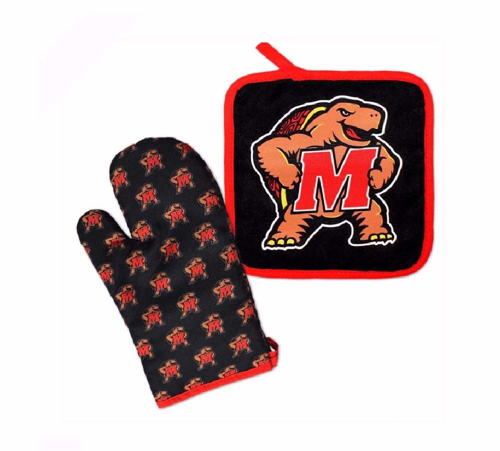 Looking for a perfect gift for the UMD grad? Help them celebrate an end to making instant ramen in the dorm with this oven mitt and pot holder bundle, each of which features a Testudo theme.