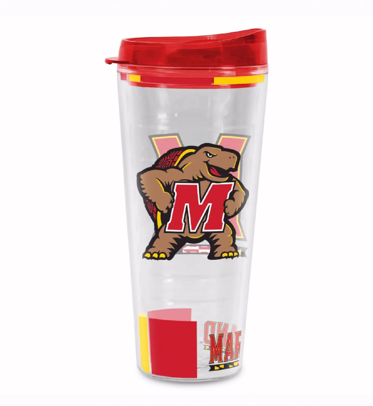 This fun and heavy-duty University of Maryland Terrapins Terps 20oz Plastic Drinking Travel Tumbler is a must-have for any dedicated fan! With its bright and vibrant graphics, it adds a pop of team spirit to any beverage. Holding up to 20 ounces, it’s perfect for enjoying your favorite drink while cheering on your team. As an officially licensed product, it’s a great way to show your support for your favorite team in style!